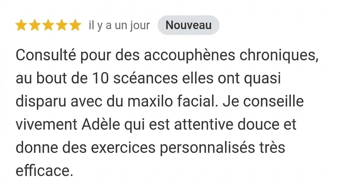 Aussi, sache qu'il n'existe que très peu de thérapeutes spécialisés dans les troubles de la mâchoire, des oreilles et des cervicales. Ils se comptent sur les doigts d'une main. En trouver un près de chez toi, qui soit compétent en la matière et qui ait des disponibilités relève du miracle, et c'est sans compter les délais d'attente avant d'avoir un rendez-vous.